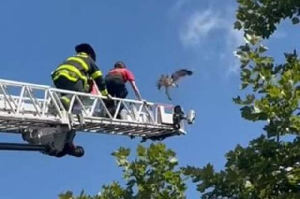 Animal rescuers in Massachusetts came to the rescue of a red-tailed hawk that became entangled in the protective netting surrounding a golf course.