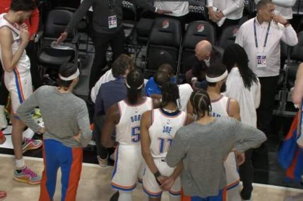 Oklahoma City Thunder center Bismack Biyombo is "fine" after he fainted during a game against the Portland Trail Blazers, coach Mark Daigneault told reporters.