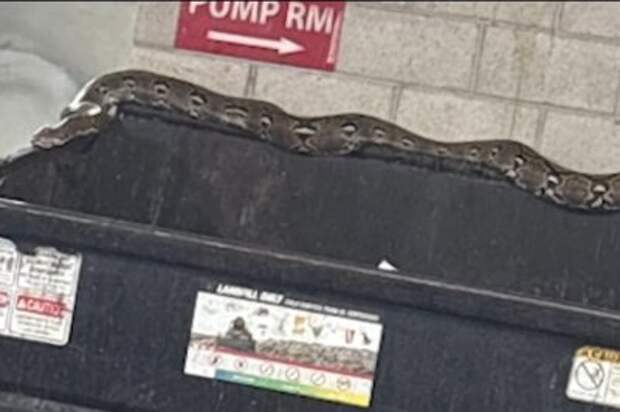A Los Angeles woman pulled into the parking garage at her apartment complex and quickly noticed something unusual atop the dumpster -- a 20-foot python.
